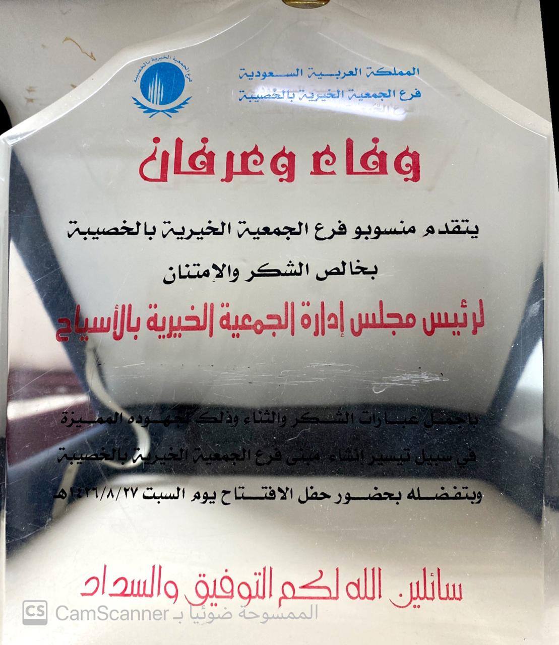 وفاء وعرفان مقدمة من منسوبي جمعية البر الخيرية بخصيبة