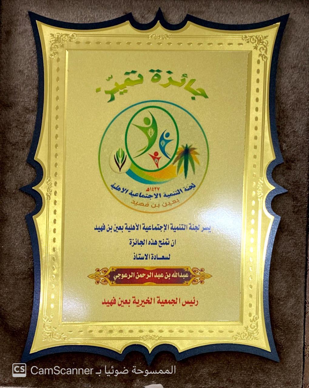 جائزة تميز مقدمة من لجنة التنمية الاجتماعية